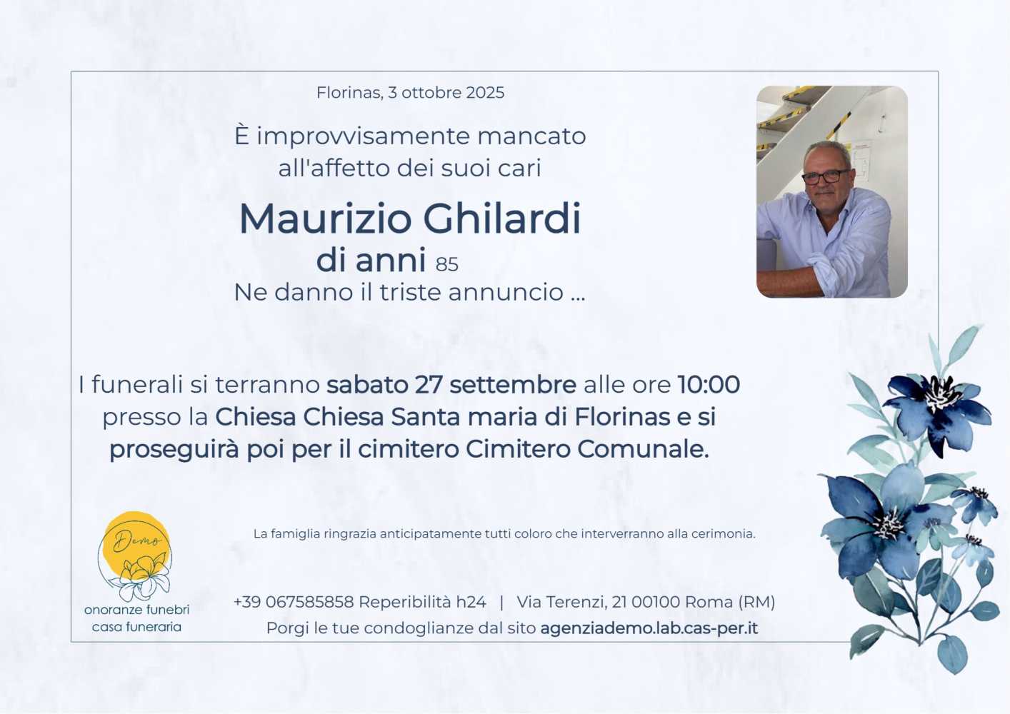 Lascia gratuitamente un messaggio di cordoglio, sarà nostra cura consegnarlo ai congiunti di Maurizio Ghilardi.